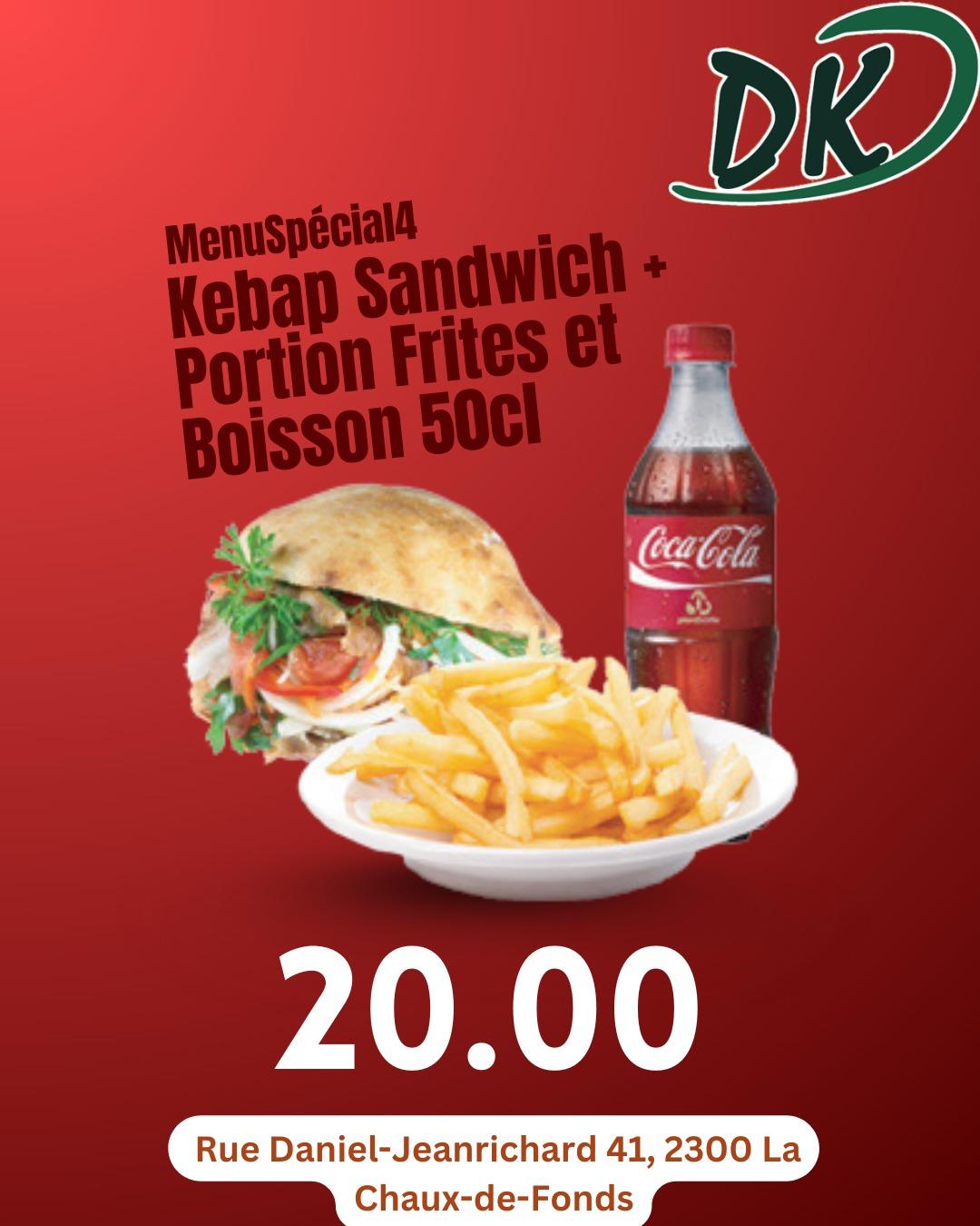 Durum + Boisson 50clChez DK Kebab, on sait que les étudiants méritent un repas gourmand, copieux et abordable ! Notre Menu Étudiant a été pensé pour vous